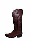 Εξωτερικά οικολογικό δέρμα με διακοσμητικές ραφές σε καφέ τύπου καουμπόικο, από την μέσα πλευρά της μπότας υπάρχει φερμουάρ, εσωτερικά υπάρχει γούνινη επένδυση ,η σόλα & το τακούνι είναι σε πιο σκούρη απόχρωση καφέ.