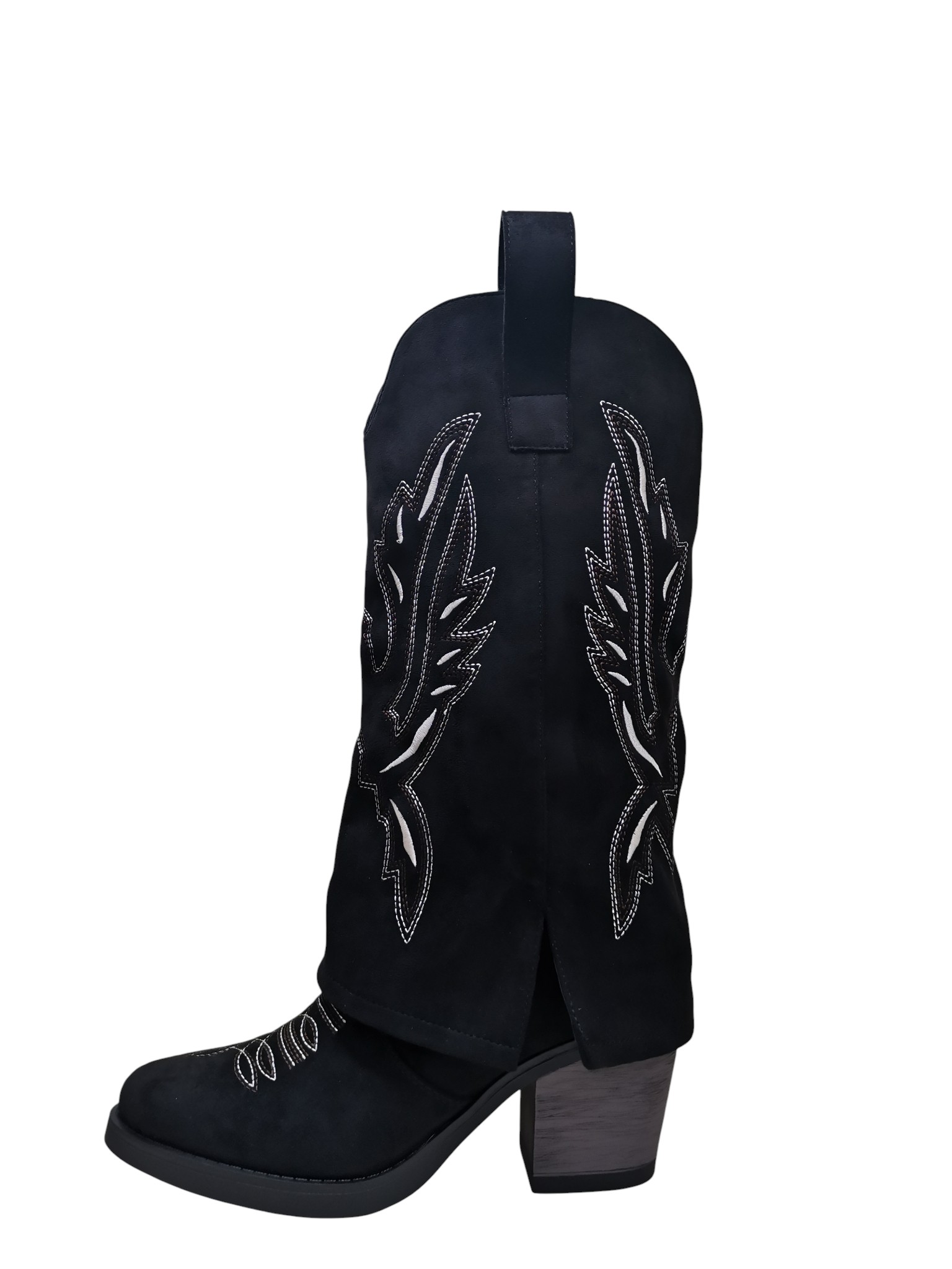 Γυναικεία μπότα με γκέτα και τακούνι σε μαύρο.