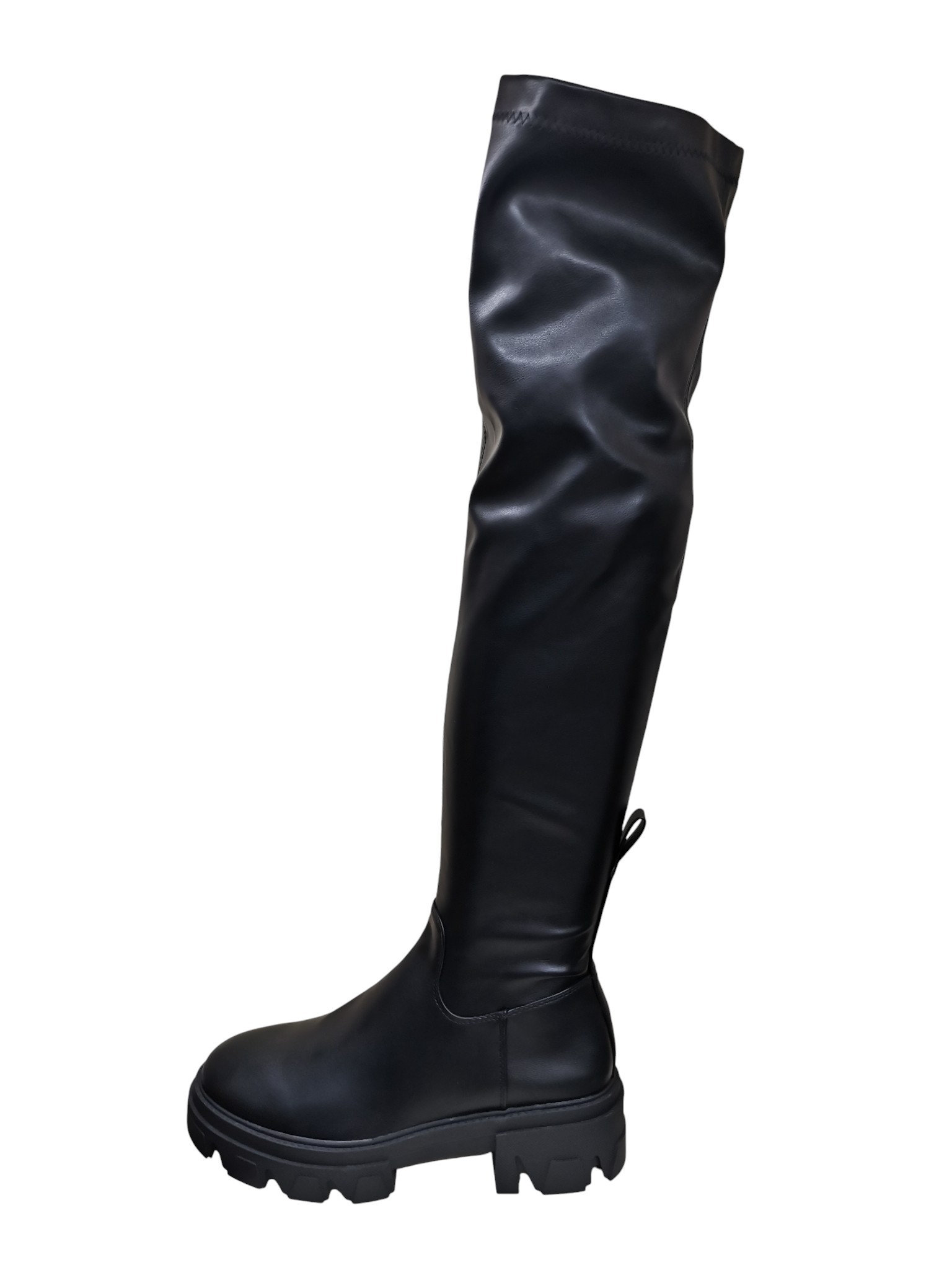 Εξωτερικά οικολογικό δέρμα με ιδιαίτερες μαύρες λεπτομέρειες, από την μέσα πλευρά της μπότας υπάρχει φερμουάρ, εσωτερικά υπάρχει γούνινη επένδυση ,η σόλα & το τακούνι είναι σε μαύρο.