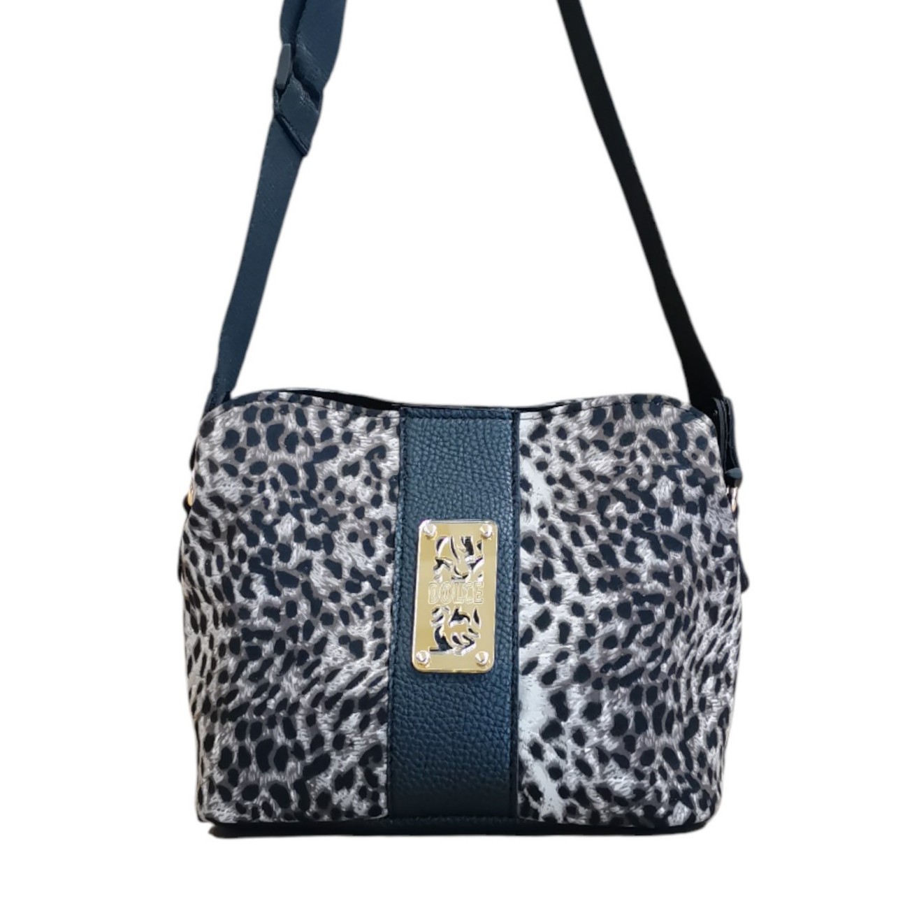 Τσάντα γυναικεία ώμου γκρί λεοπάρ, διαθέτει ένα ιμάντα για κράτημα στον ώμο και χιαστί