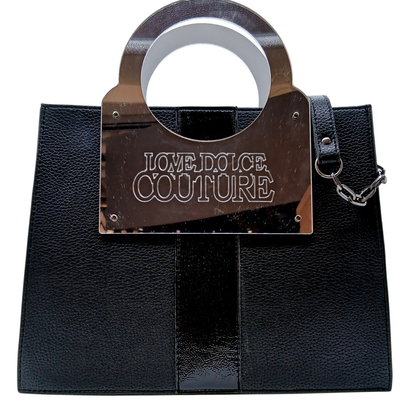 Γυναικεία τσάντα ώμου, διακοσμημένη με plexiglass, διαθέτει δύο λουριά σταθερά.