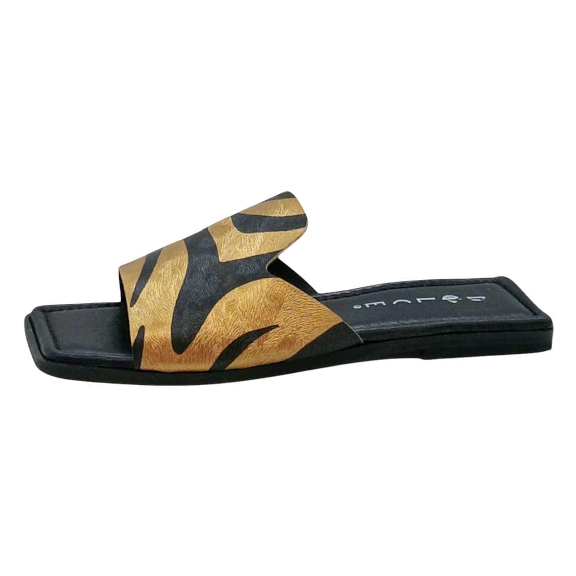 Γυναικεία δερμάτινα σανδάλια φλατ καρέ φόρμα από την νέα συλλογή της εταιρείας.