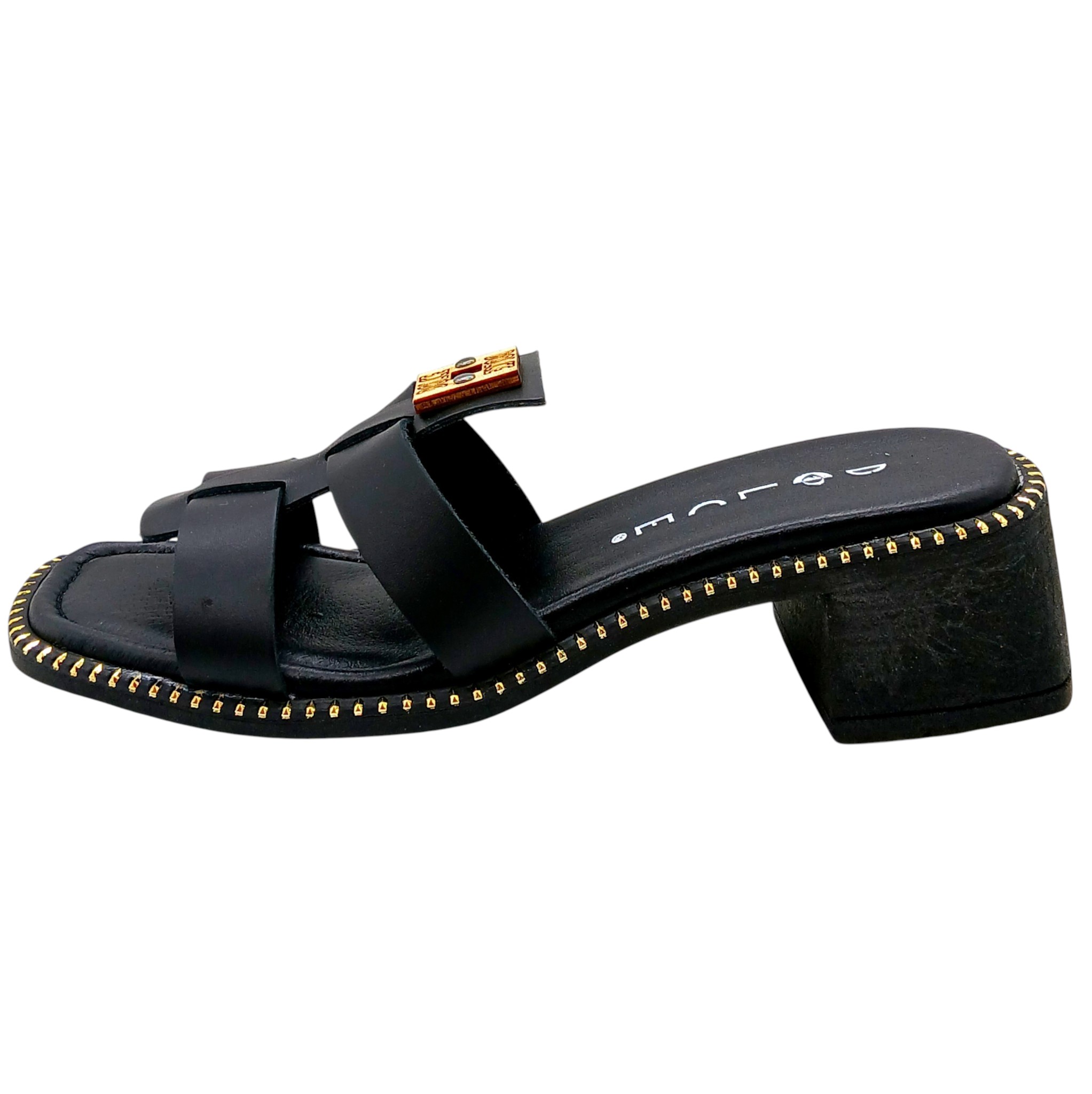 Γυναικείο πέδιλο δερμάτινο με τακούνι και πολύ μαλακή-εύκαμπτη σόλα.